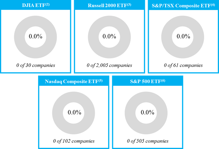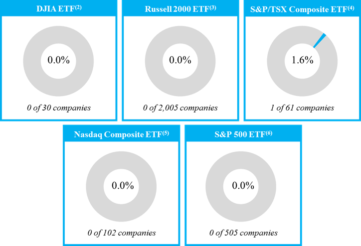 Our portfolio has almost no overlap with major indices and ETFs(1)